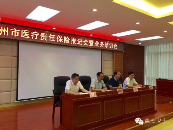 8月2日下午,在广西贺州市卫计委会议室,召开了贺州市医疗责任保险推进会暨业务培训会。本次会议由市卫计委牵头组织,市司法局、市卫计委、中惠保险经纪有限公司、中国人民财产保险股份有限公司贺州分公司(以下简称人保财险贺州分公司)、市及地区医院相关领导干部参加了会议,会议主要围绕建设平安医院,构建和谐医患关系联动机制启动主题进行专题研究。